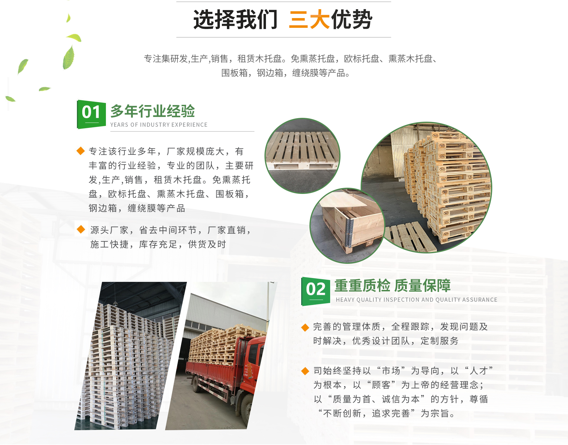 蕪湖奔騰包裝股份有限公司坐落于滬渝高速灣沚出口處3公里,距離灣沚高鐵站6公里,蕪宣客運(yùn)機(jī)場5公里,交通十分便利。我公司是專注集木托盤研發(fā),生產(chǎn),銷售,租賃的綜合服務(wù)商。本公司生產(chǎn)的免熏蒸托盤,歐標(biāo)托盤、熏蒸木托盤、圍板箱,鋼邊箱等產(chǎn)品遠(yuǎn)銷海內(nèi)外。公司本著“以質(zhì)量求生存,以信譽(yù)謀發(fā)展,以服務(wù)拓出路”的服務(wù)經(jīng)營理念;重視產(chǎn)品質(zhì)量和服務(wù),為用戶著想。根據(jù)客戶需求,及時送貨。公司始終堅持以“市場”為導(dǎo)向,以“人才”為根本,以“顧客”為上帝的經(jīng)營理念;以“質(zhì)量為首、誠信為本”的方針,尊循“不斷創(chuàng)新,追求完善”為宗旨。本著生產(chǎn)廠家,減少中間流通環(huán)節(jié)的原則,讓利于每位客戶朋友。我們的產(chǎn)品價格合理,質(zhì)量過硬,真誠歡迎各方客商前來業(yè)務(wù)洽談與合作。